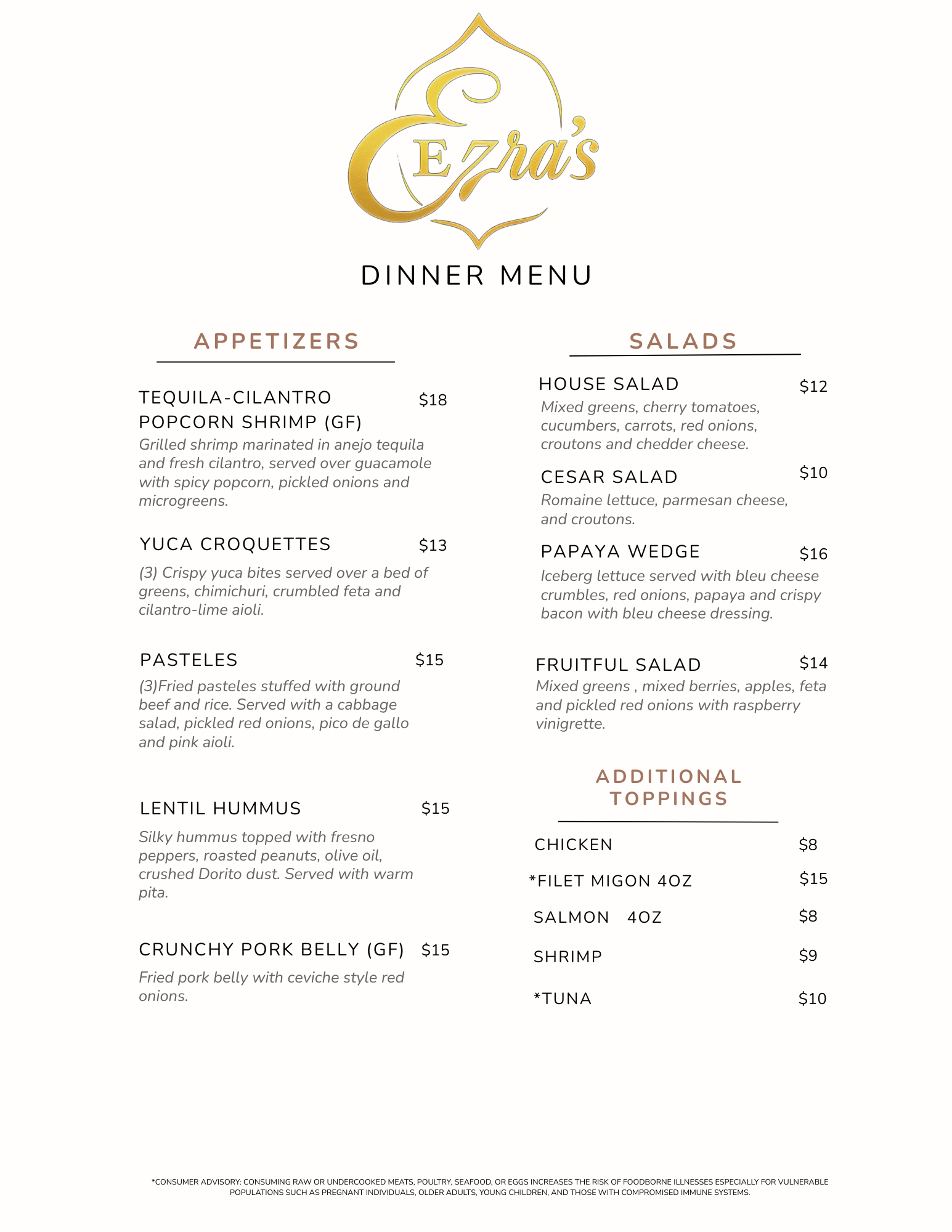 MON: CLOSEDCopyright © 2025 Ezra's All Rights Reserved. Sitemap. Accessibility Statement